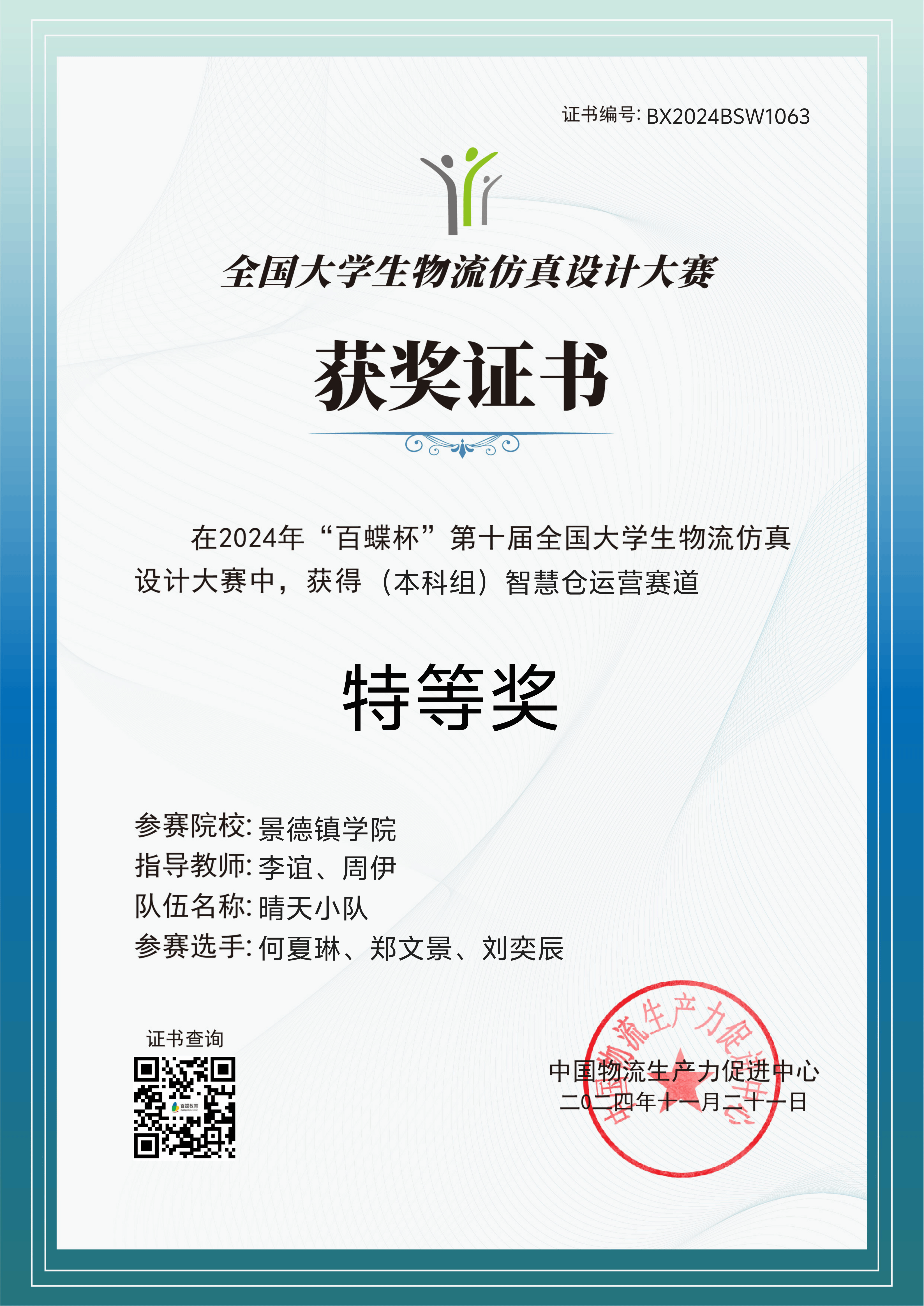 学生在全国大赛中屡获金奖。近三年,物流管理专业学生参加各类各级专业竞赛,累计获得国家级奖项38项,省部级奖项4项。就业率稳居90%以上,彰显了“以赛促学、以践促就业”的育人成效。